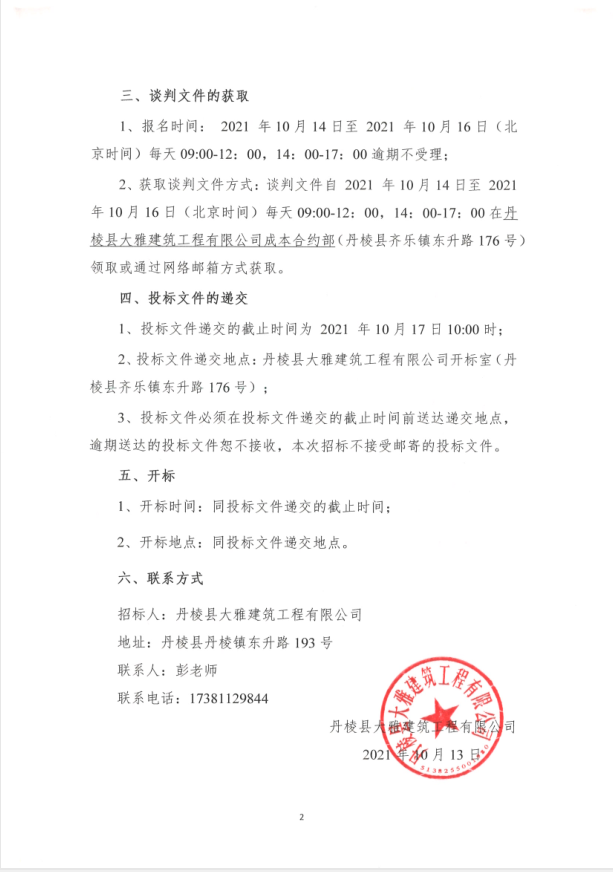 【大雅建筑公司】丹棱縣沿河慢行系統(tǒng)橋體下穿人行道排洪排澇改造工程(一標(biāo)段)專業(yè)分包競(jìng)爭性談判公告