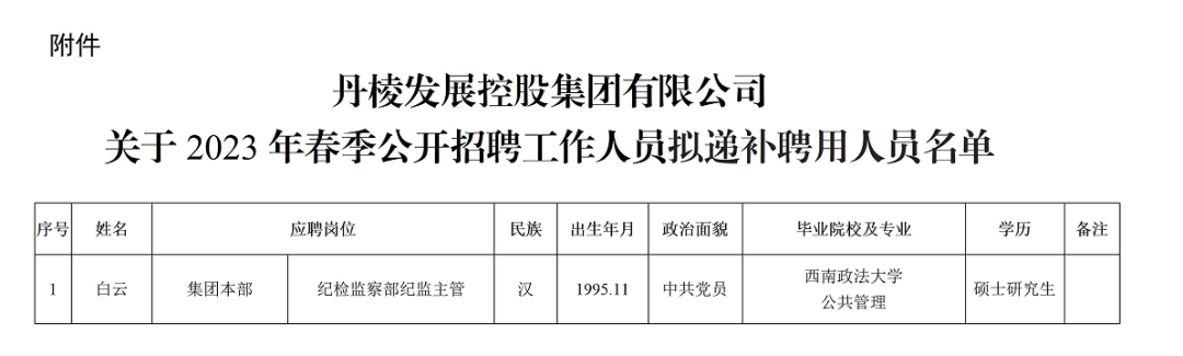 丹棱發(fā)展控股集團有限公司關(guān)于2023年春季公開招聘工作人員擬遞補聘用人員的公示